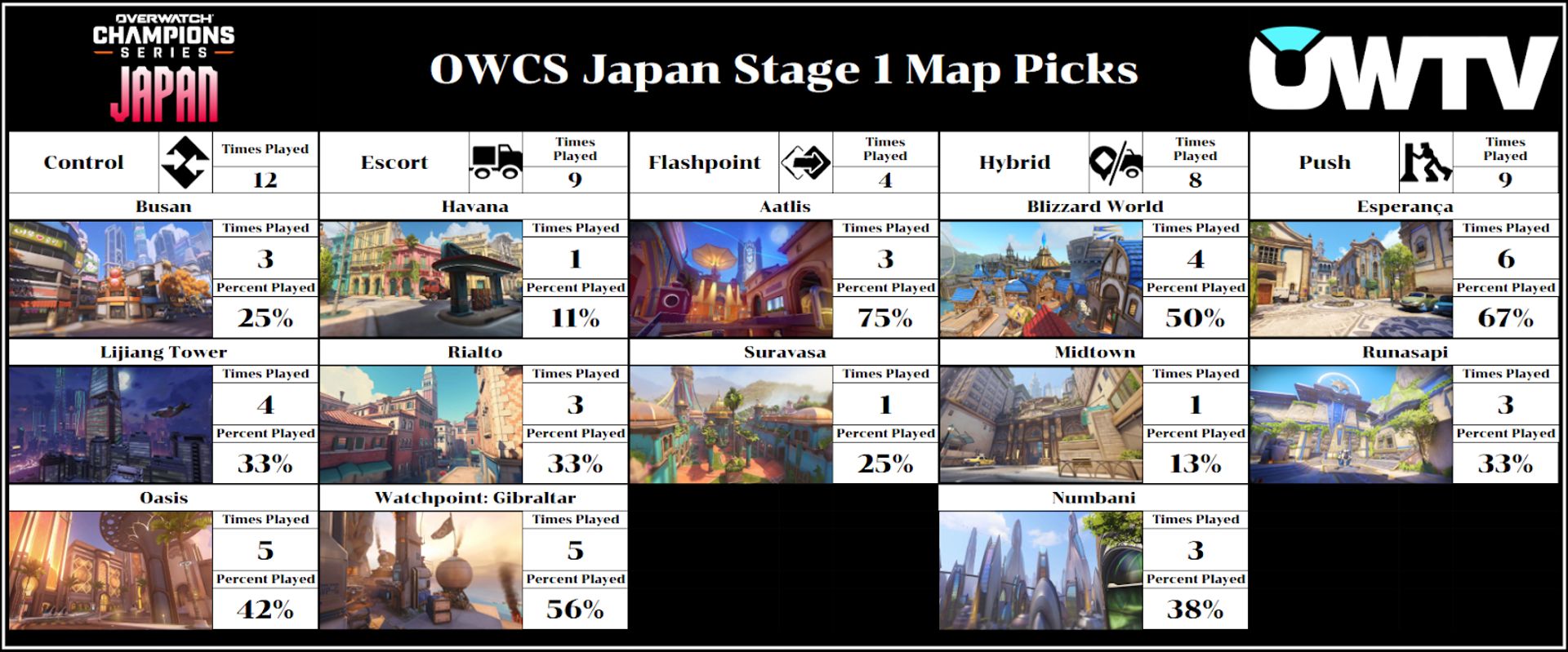 As of the end of week two of OWCS Japan, we have 42 total map picks. With the full two weeks of data, there are some trends that start to form, and some overall takeaways we can parse.