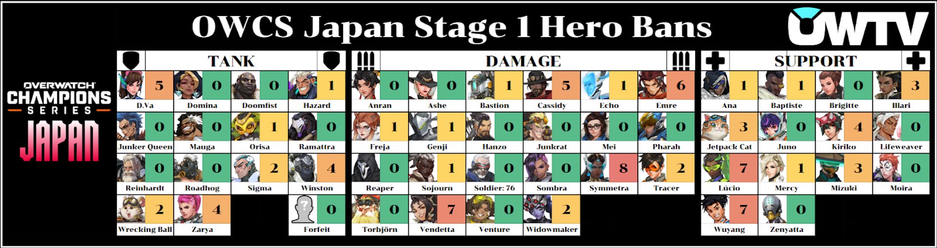 With 82 hero bans being made this season, 42 of them from this week, there are some new trends that can be stopped. Here are some key takeaways from Week 2’s hero bans in OWCS Japan:
