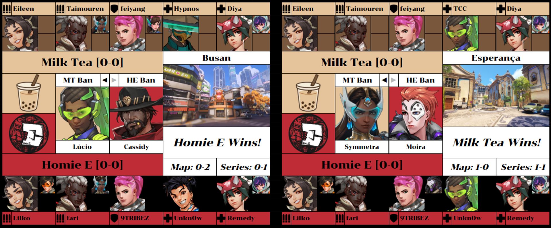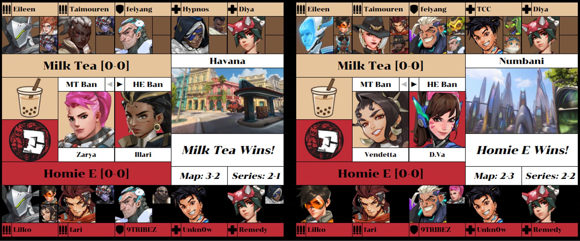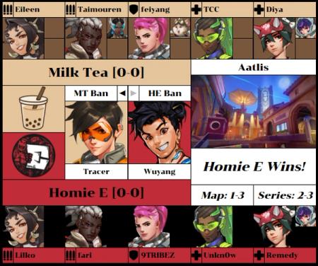 In the first match of the regular season, Homie E were coming off an undefeated run in Open Qualifiers, while Temporary OWCS Partner Team Milk Tea sought to answer the questions raised by their role-swapped players and near-total roster revamp.