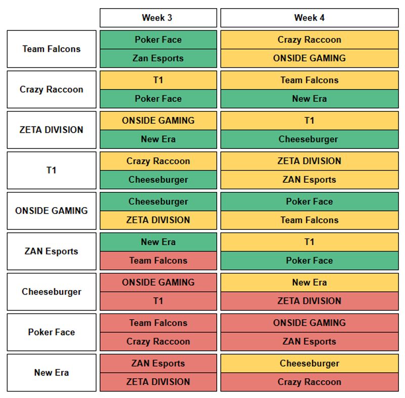 On the other hand, Team Falcons and ZETA DIVISION have easy schedules this week. They remain safe picks, but donât expect more than six maps of playtime, which would cap their fantasy ceiling. Hopefully, ZETA avoid unusual hero choices this time around.